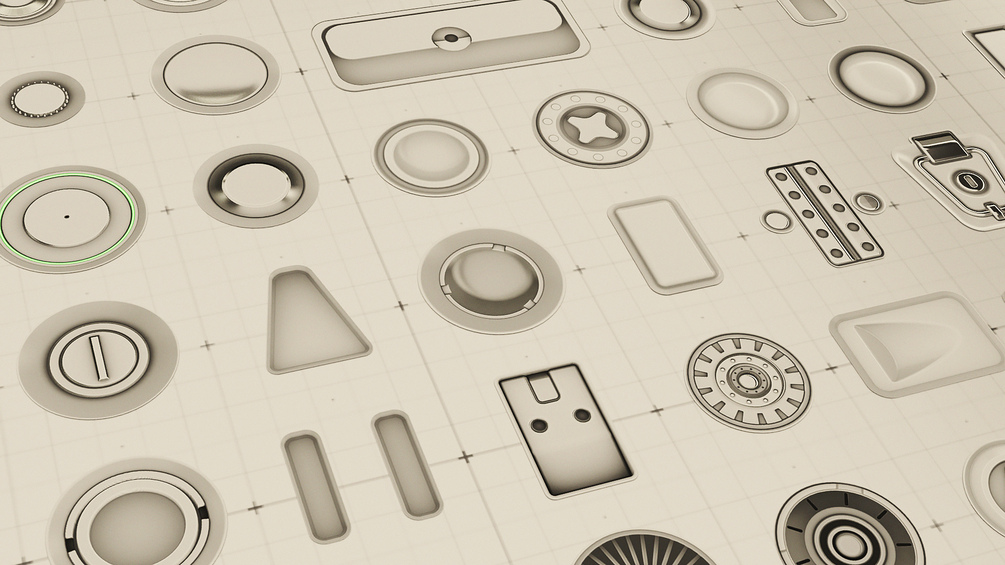 This pack has 58 decals for hard-surface surfaces, including emission decals. It is ready for Decal Machine.